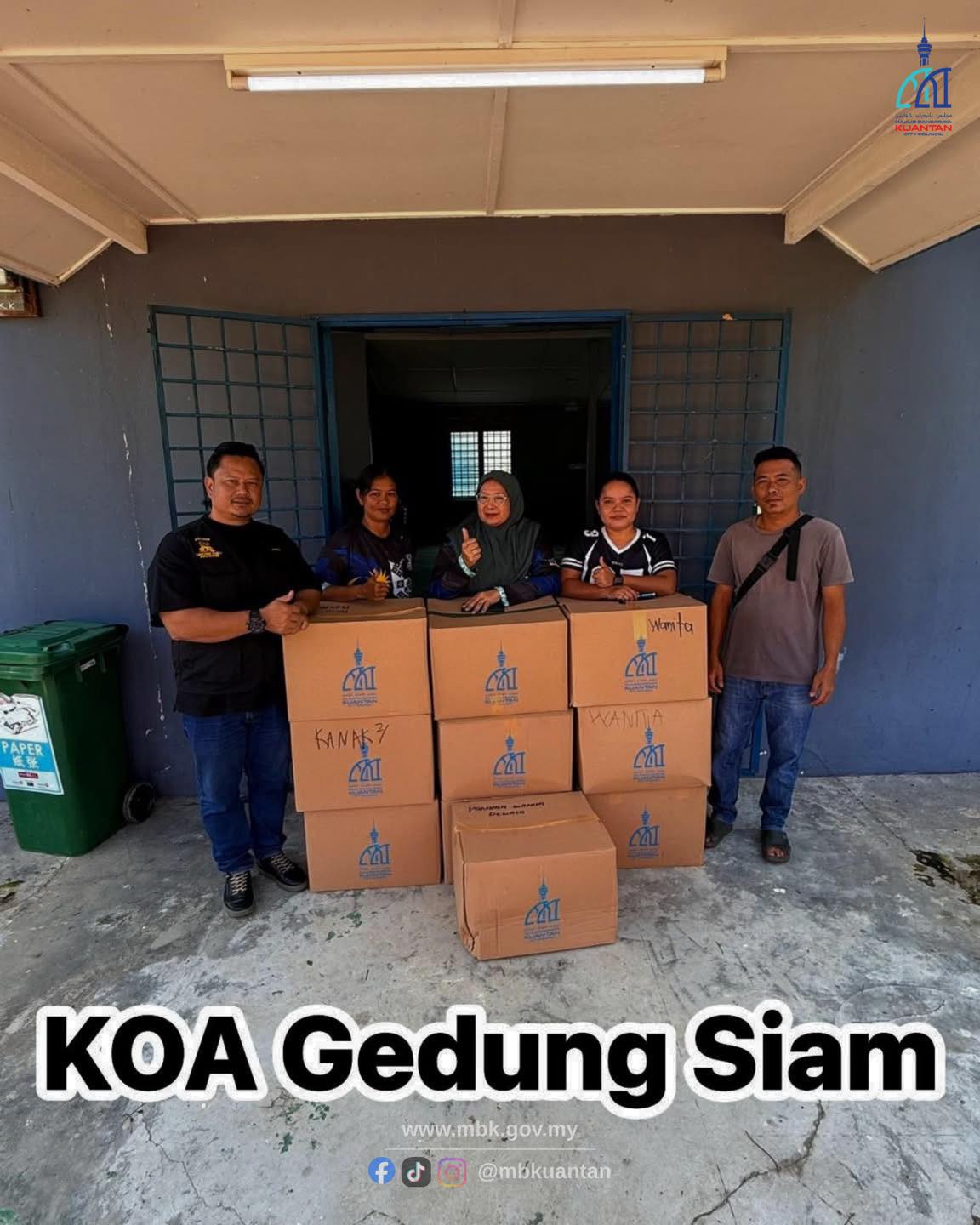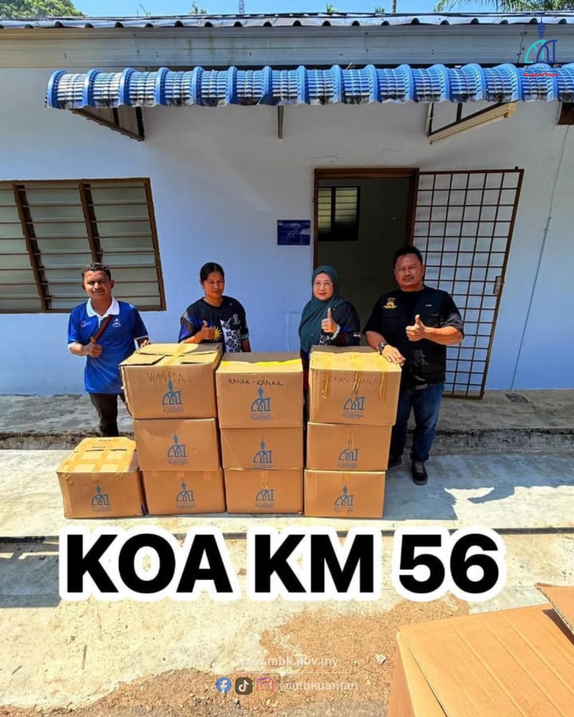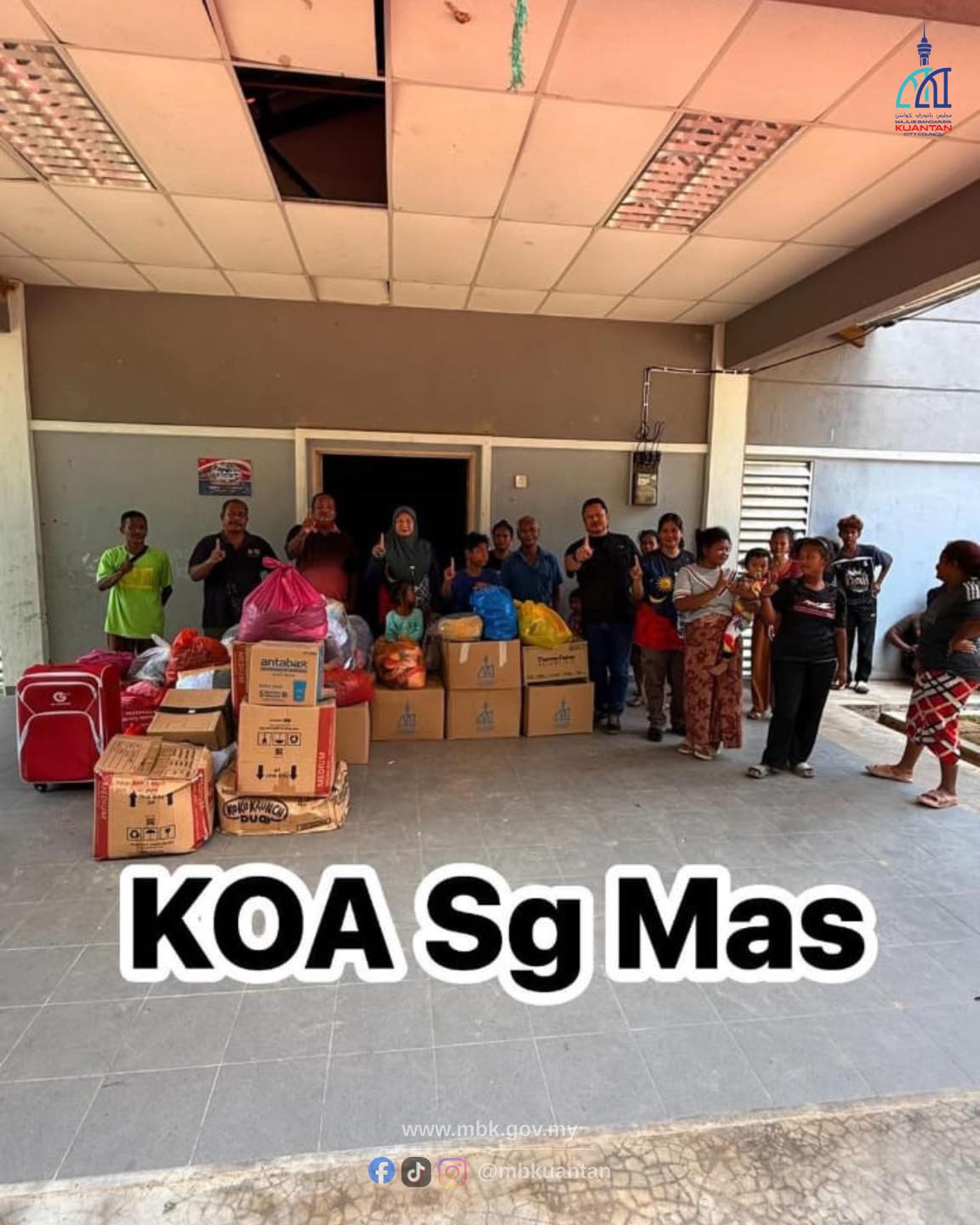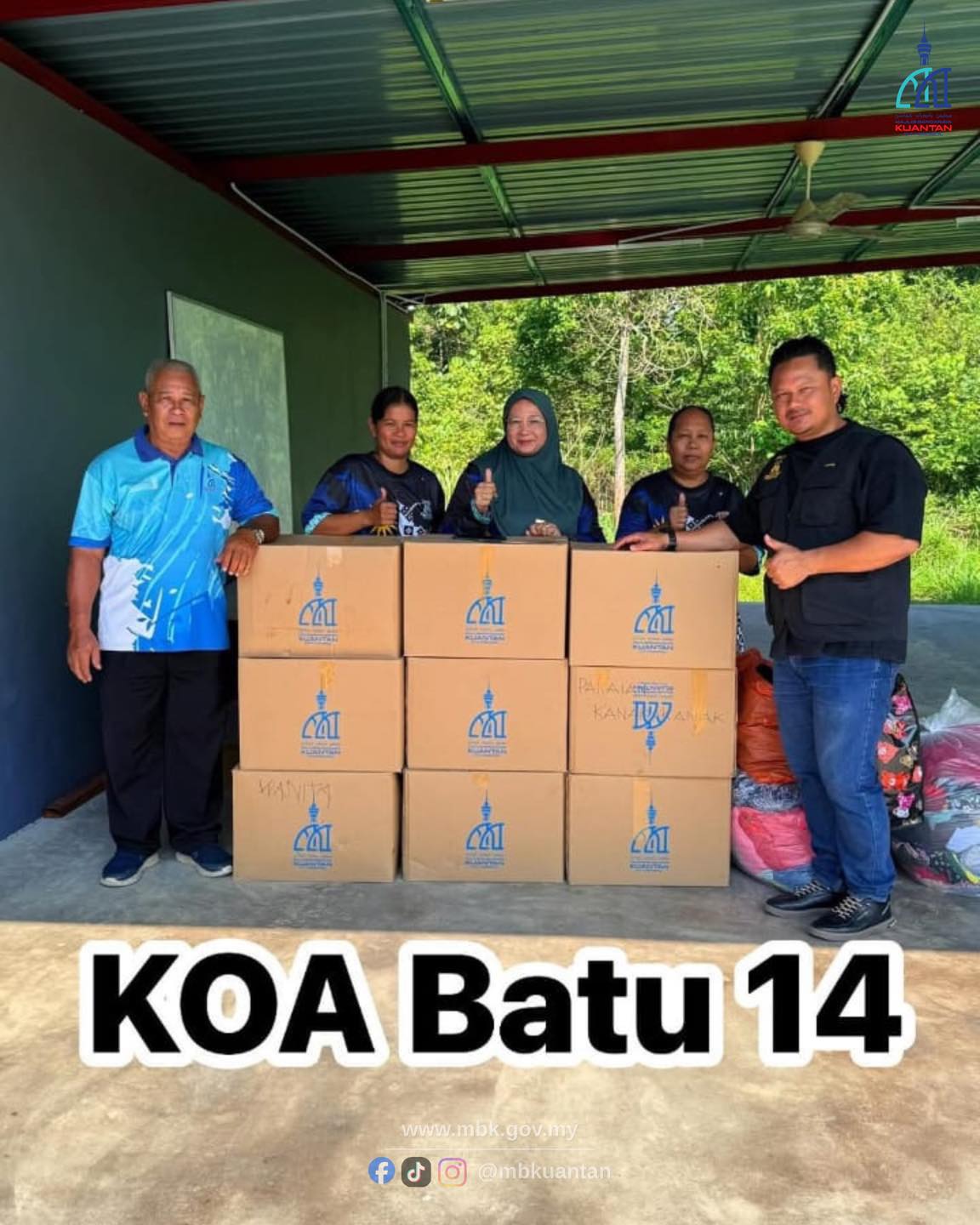 Serahan sumbangan akan dilaksanakan di dewan atau balairaya setiap kampung dan akan diselaraskan oleh YB Beradat (Batin), Pengerusi JPKKOA serta Ahli Jawatankuasa JPKKOA untuk diagihkan kepada penduduk kampung. Program ini merupakan hasil kerjasama antara Persatuan Bulan Sabit Merah Negeri Pahang dan Majlis Bandaraya Kuantan (MBK).