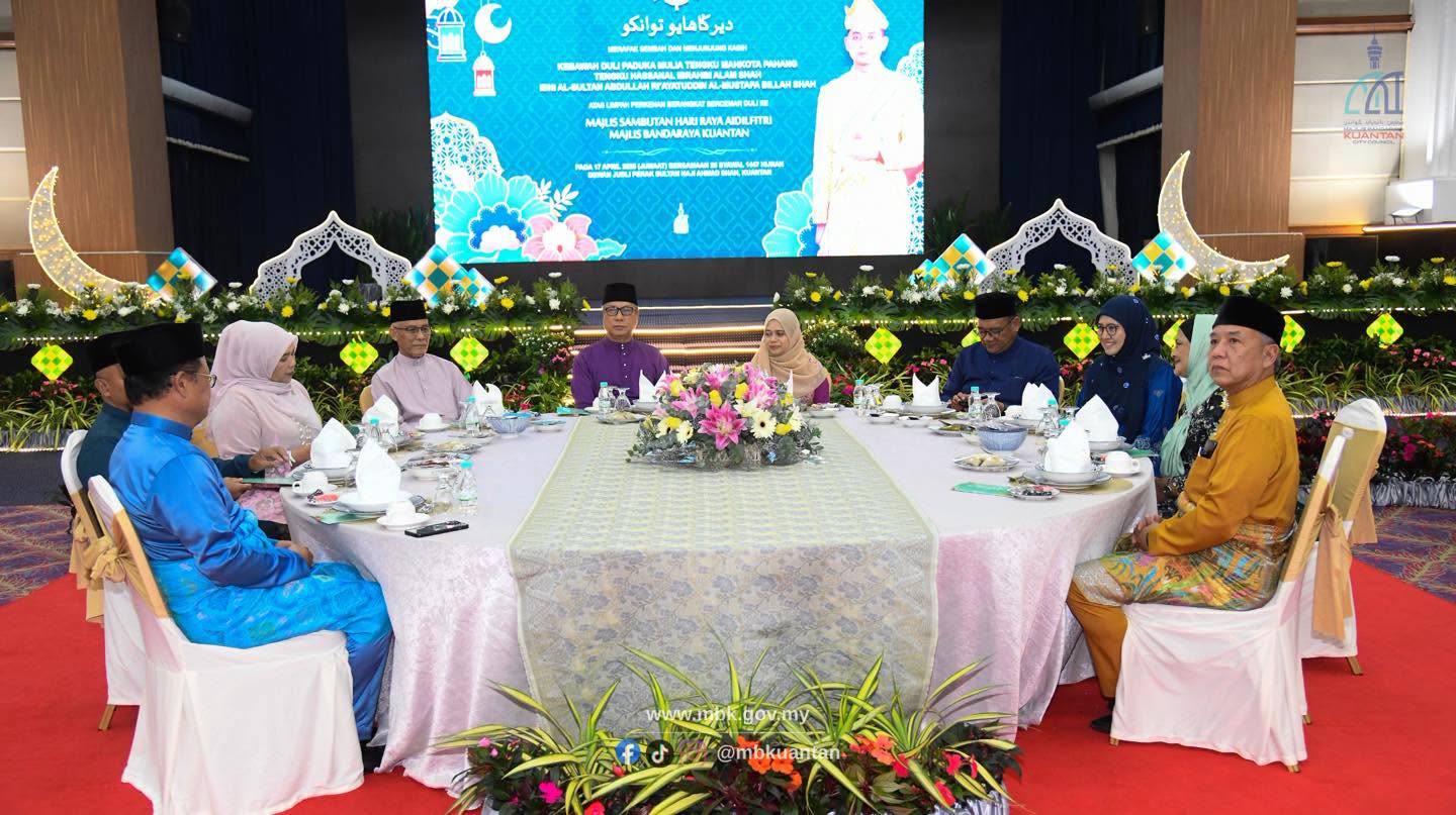 17 April 2026 | Jumaat – Suasana meriah dan harmoni mewarnai Majlis Sambutan Hari Raya Aidilfitri Majlis Bandaraya Kuantan (MBK) 2026M/1447H yang berlangsung di Dewan Jubli Perak, Kuantan.