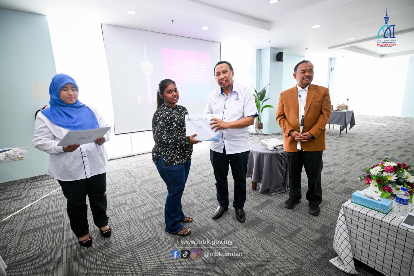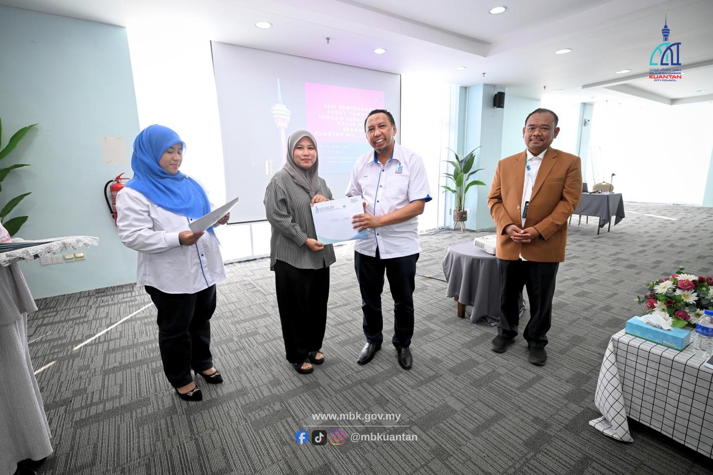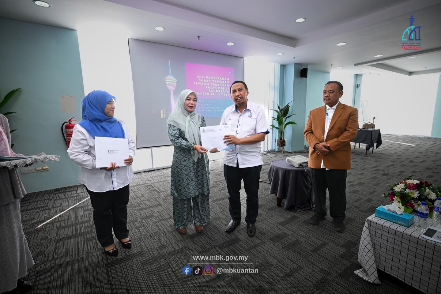 7 April 2026 | Selasa – Majlis Bandaraya Kuantan (MBK) telah mengadakan Sesi Penyerahan Surat Tawaran dan Kunci Gerai yang berlangsung dengan jayanya bertempat di Dewan Seminar Lestari , Aras 2 Kompleks Bandaraya MBK. Sesi penyerahan tersebut telah disempurnakan oleh Tuan Haji Mohd Nizam bin Mahayuddin, Setiausaha Majlis Bandaraya Kuantan.