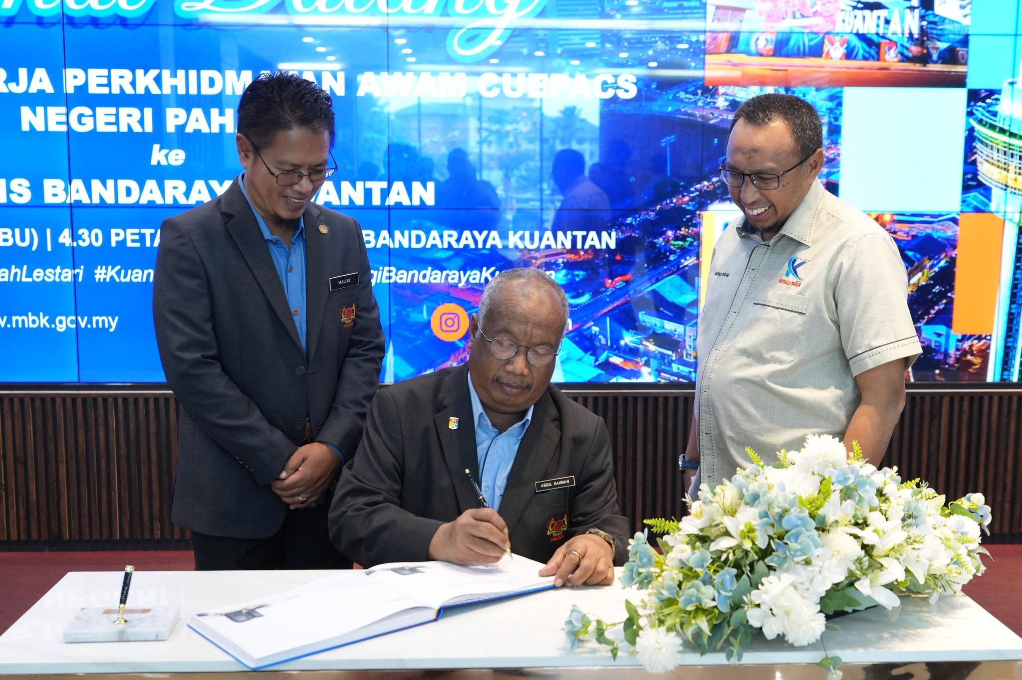 3 September 2025 | Rabu – Pihak Majlis telah menerima kunjungan delegasi daripada Kesatuan Pekerja Perkhidmatan Awam CUEPACS Negeri Pahang sempena Sambutan Hari Kebangsaan ke-68 dan Hari Malaysia 2025, CUEPACS Negeri Pahang. Delegasi disambut oleh Setiausaha Majlis, Tuan Haji Mohd Nizam bin Mahayuddin. Objektif utama program ini adalah untuk menyemai semangat patriotisme, memperkukuh Merdeka MADANI serta mengeratkan hubungan silaturahim antara CUEPACS Negeri bersama agensi-agensi kerajaan di Pahang.