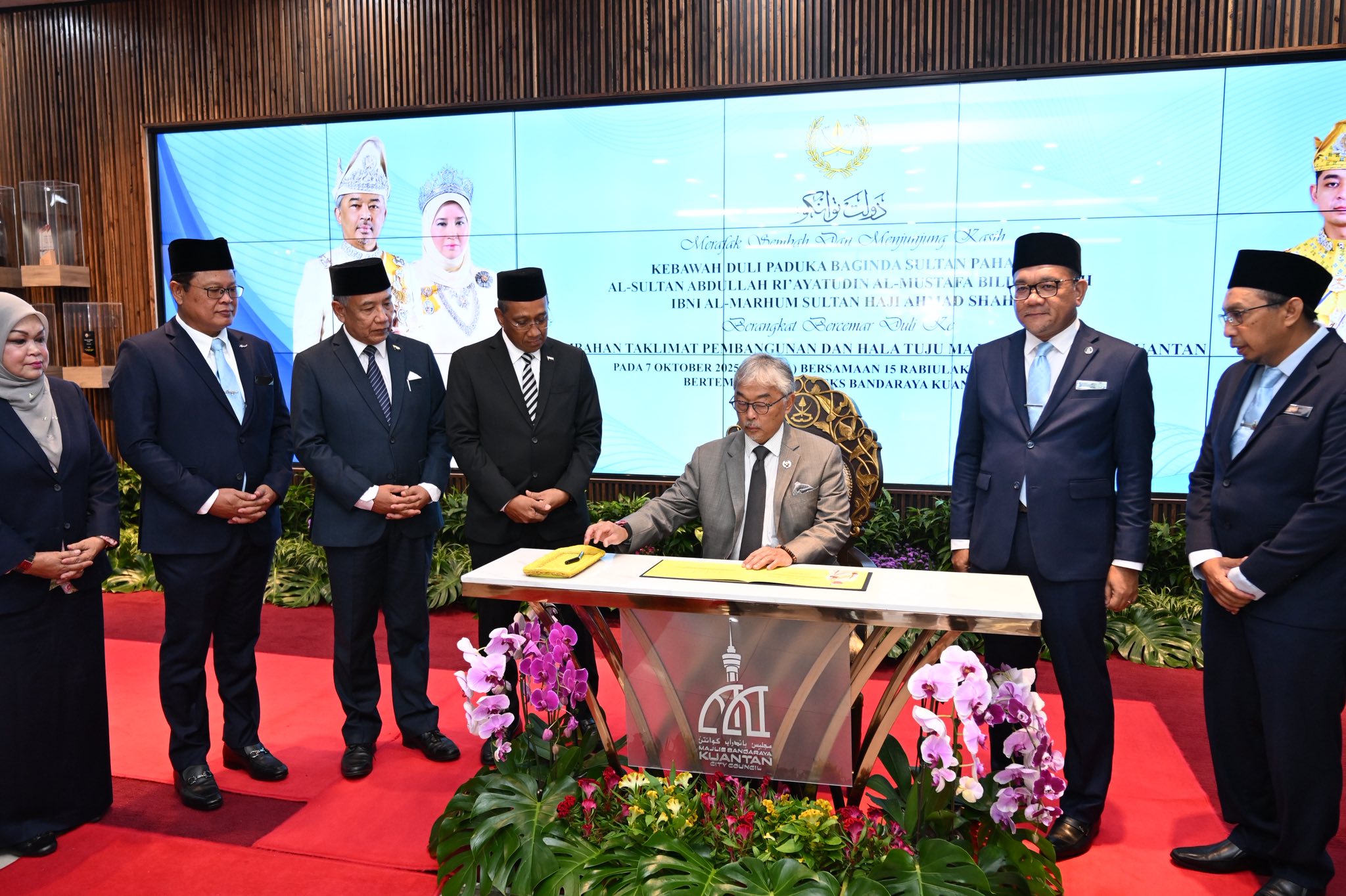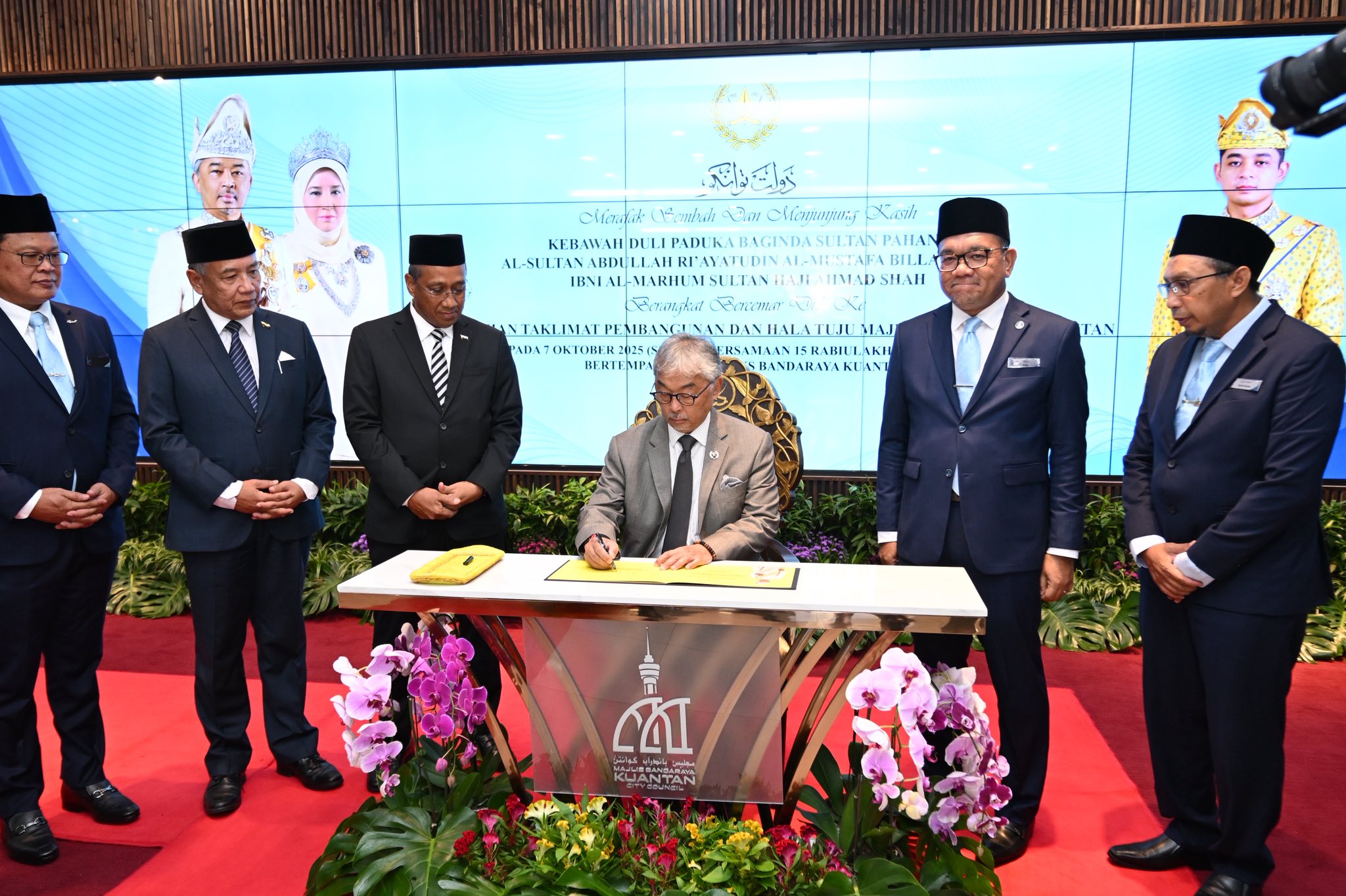 Kuantan, 7 Oktober 2025 – Kebawah Duli Paduka Baginda Sultan Pahang, Al-Sultan Abdullah Ri’ayatuddin Al-Mustafa Billah Shah Ibni Al-Marhum Sultan Haji Ahmad Shah berkenan berangkat bercemar duli ke Majlis Bandaraya Kuantan (MBK) bagi menghadiri Persembahan Taklimat Pembangunan dan Hala Tuju MBK pada hari ini.