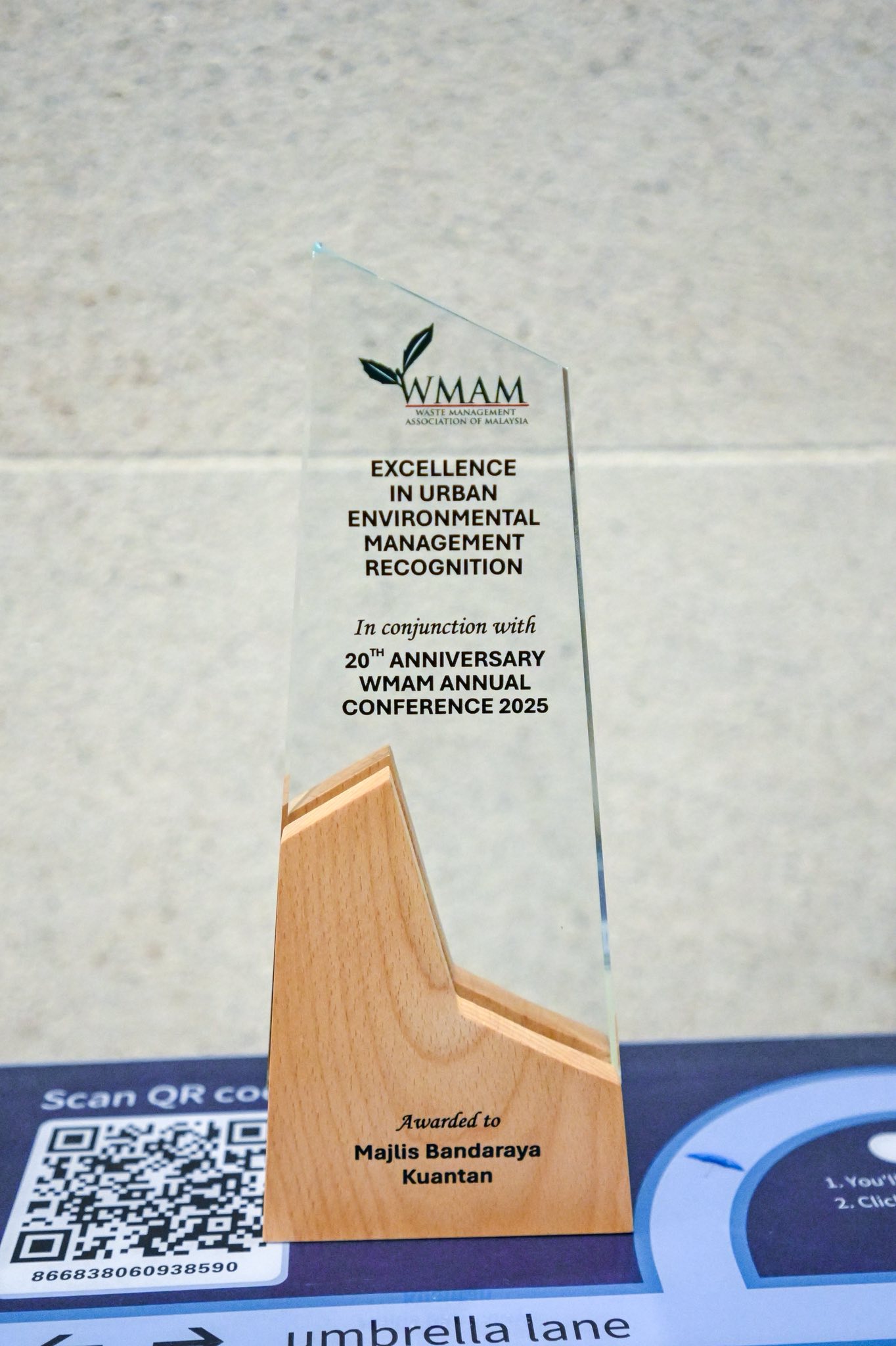 8 September 2025 | Isnin- Majlis Bandaraya Kuantan (MBK) telah dianugerahkan Excellence in Urban Environmental Management Award sempena WMAM 20th Anniversary Conference 2025 bertempat di Royale Chulan, Kuala Lumpur. Anugerah berprestij ini telah disampaikan oleh Mr. James Law, President of International Solid Waste Association (ISWA) sebagai pengiktirafan terhadap inisiatif MBK dalam melaksanakan pelbagai program kelestarian alam sekitar seperti Jangan Buang, Ini Wang – Community Recycling Day, yang berjaya mengumpul sebanyak 1,187 kg barangan kitar semula termasuk kertas/kotak, logam, plastik, minyak masak terpakai dan e-waste dalam satu sesi. Seterusnya, Drive-Thru Recycling Centre (DTRC) di Taman Gelora bersama Alam Flora, yang mencatatkan peningkatan lebih 82% kutipan kitar semula dan yang terakhir program penanaman pokok & Eco-Tourism Positioning bersama Canon dan komuniti, ke arah menghijaukan Kuantan serta meningkatkan kesedaran masyarakat. Kejayaan ini membuktikan komitmen MBK dalam memperkukuh usaha kelestarian bandar serta mendukung agenda hijau demi kesejahteraan warga Kuantan.